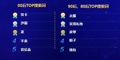 其中,女性搜索较高的关键词是,衣服、皮带、钱包、鞋子、手表、茶杯等。此外,实用、高档也成为高频搜索词,表达了女儿对父亲的深厚感情。男性搜索较高的是,手表、皮带、钱包、酒、剃须刀、打火机、皮鞋、衬衫等,具备明显的男性偏好。过节时与父亲“把酒话家常”,也是一份不错的礼物。