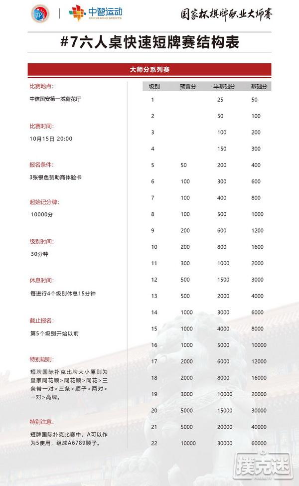 作位今年国家杯的第三站赛事,我们希望用更加专业的赛事表现,贴心的服务,为您带来绿色、竞技、专业、荣耀的扑克体验,同时,作为一场秋天北上的赛事,我们希望在古香古色的中信第一城中,您能感受到北方的秋爽和楼阁。