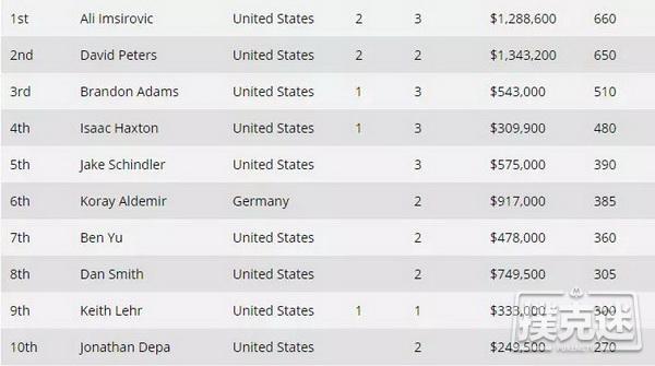 今年的扑克大师赛真的非常有意思,Brandon Adams连续打入三场赛事的决胜桌,Ali Imsirovic连续取得两场赛事的冠军,而David Peters是今年赛事开场和闭幕赛事的冠军。
