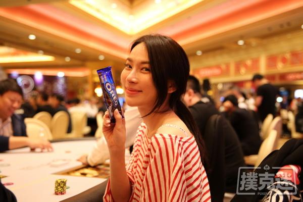 正当选手们浴血奋战之时,扑克王俱乐部CEO Winfred Yu也来到赛事现场查看赛事进行的情况。在此期间,碰见好友——美女牌手赖佩佩,特别有爱心的为赖佩佩带来了幸运巧克力,祝福她allin必胜,马到成功!