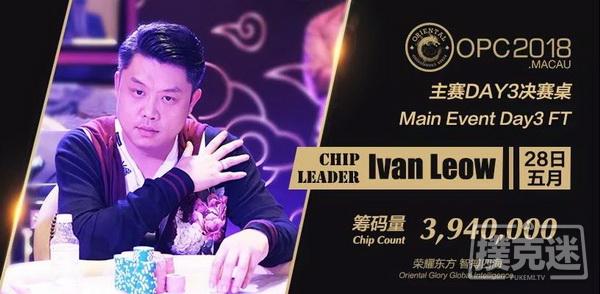 而来自马来西亚的选手Ivan Leow,以3,940,000的记分牌量量为8人之首,傲视决赛桌!这次已经是Ivan Leow第三次成为CL,他的出色表现令人讶异。