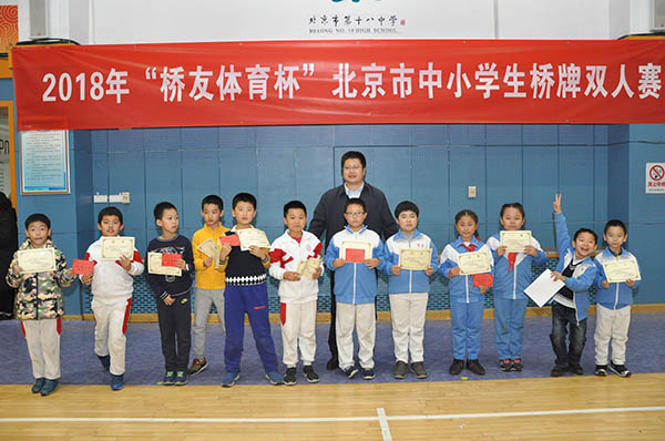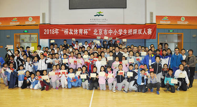 在北京桥牌协会的周密组织下,在各校广大师生和社会各界的积极参与和家长们的大力支持下,2018年“桥友体育杯”北京市中小学生桥牌双人赛圆满结束。