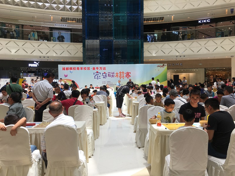 6月2日下午,由成都棋院主办,金牛万达广场、成都市蓓蕾棋类运动青少年体育俱乐部和成都棋校青羊校区共同承办的青羊校区“庆六一迎暑假”家庭联棋赛在金牛万达广场举办,200名小朋友和家长前来参加了围棋、象棋和国际象棋三个项目,共五轮比赛。