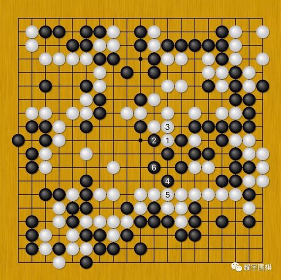 可以说,本局申真谞要是获胜的话,白102这步棋功不可没,而且从这步棋可以看出,申真谞自从关注了“耀宇围棋”公众号后,知道陈耀烨的大龙是不能强杀的,只能智取。