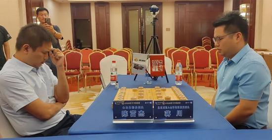 北京威凯金环建设京冀联队与山东体彩队的战局可谓火花四溅,其过程颇富戏剧性。首局京冀大将蒋川酣斗山东陈富杰,两位都在上一轮为本队立功,状态正佳。蒋川中局取得多兵优势,但陈富杰马炮卒位置优越,以攻为守,闪展腾挪之下消灭红方一枚过河兵,顿时和棋希望大增。或许是前面一段战斗过于紧张激烈,局势得到缓和后的陈富杰稍有放松,不慎被蒋川以双炮打败。次局山东队主教练谢岿上场,开局不利,一上来就被陆伟韬白吃双士,处境尴尬。后防漏风的谢岿索性一不做二不休,拼命反击。大占优势的陆伟韬此时反倒手软,一再退让,局面顿成对攻之势,双方兵卒赛跑,抢时间拼速度。关键时刻陆伟韬一步飞象错失良机,被谢岿反击得手,捷足先登。第三盘京冀赵殿宇在大兵团作战中运子有方,批亢捣虚,力擒小将李学淏,京冀重新获得领先。第四局,退无可退的李翰林恶战金波,金大师在重压之下一个眼花,竟然白送一马。李翰林笑纳大礼,棋局戛然而止。这样,京鲁之战刀刀见血,双方4比4打平。