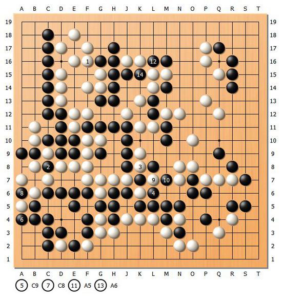 [图12]本局可以说是井山裕太的好局。但是在最后阶段还是迎来了高潮,这盘棋的算路还是相当深远的。