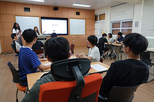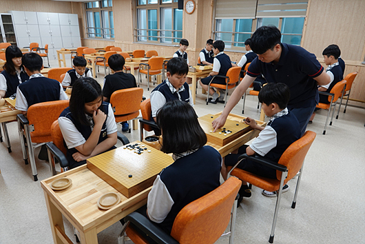 第7节课,由一般课程和围棋课程交替进行。图为金主鎬九段在给围棋学校为二年级学生上课。
