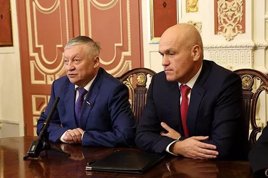 国际棋联主席德沃科维奇、前世界冠军卡尔波夫、俄棋协主席菲拉托夫、斯维尔德洛夫斯克州棋协主席西马诺夫斯基、国际棋联总干事苏托夫斯基,以及俄棋协首席执行官格鲁霍夫斯基出席了新闻发布会。