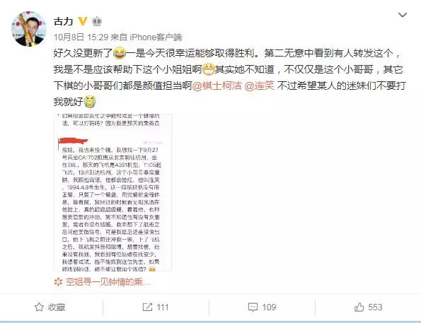 空姐发帖寻找一见钟情围棋手@连笑 ,