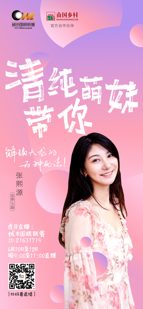 6月10日晚9:00,美女棋手张熙源5段将为大家带来城围联2019赛季半决赛第二局,南京苏中建设VS台北华保盛这场比赛的棋局解说!