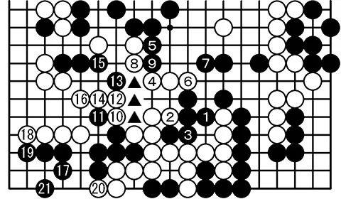 黑131这手棋或许在黑1位会更加简明。白2和白4先选择出头,如果此时黑5断掉退路的话,白10的断开始只能冲击黑棋的薄味。黑11开始行至黑15,首先保证黑▲三子的安危。然后问题就是左下角的黑棋,能否活棋呢?