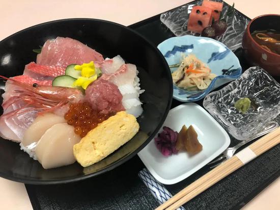 中午:双方都点了海鲜丼和乌龙茶