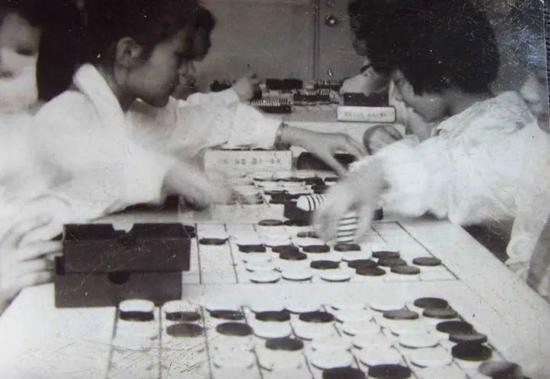 回到弄堂里后,我与哥哥把挑来的木料放在地上,根据围棋子儿的尺寸,按照10粒一组,用铅笔划好,央求箍桶的阿祥师傅,帮我们一块一块锯开,然后分给几个有热心、又细心,平时手工活较好的小伙伴们,大头则由我和哥哥承担。