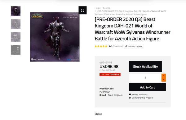 近日国外厂商Beast Kingdom推出了《魔兽》希尔瓦娜