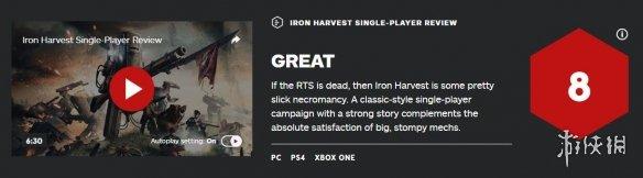 IGN在今天为Deep Silver即将发行的蒸汽朋克风格即时战略游戏《钢铁收割(Iron Harvest)》的单人战役部分打出了评分,这款RTS游戏获得了8分的好评,并且IGN称本作为RTS游戏起死回生之作。下面让我们一起来看看吧!