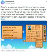 《星露谷物语》游戏1.5版本将加入“沙滩今日(12月21日), ConcernedApe发布了一条推文:《星露谷物语》游戏1.5版本将加入沙滩农场新地图和一些新的游戏选项。 官推截图: ConcernedApe表示:如果玩家已经是《星露谷物语》的老…
