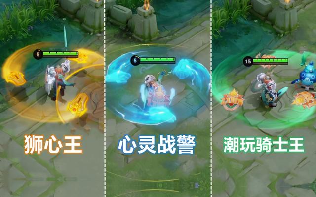 然后有7款皮肤进行了优化升级,首先是亚瑟的3款皮肤,分别是狮心王、心灵战警、潮玩骑士王,这三款皮肤目前优化的还是很不错的,二技能特效更加的明显,看起来就很炫酷,喜欢亚瑟的小伙伴可以期待一下,目前这个英雄算是有里面操作简单,并且非常火的人物。