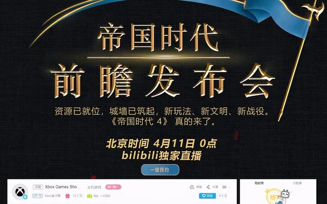 微软将于北京时间4月11日0:00点举行《帝国时代》前瞻发布会直播,本次直播活动在国内由哔哩哔哩平台将独家放送,玩家可以前往B站账号Xbox盒子君直播间观看。这次直播将给玩家们带来《帝国时代4》最新消息,包括实机演示、战役模式和文明等内容,敬请期待。