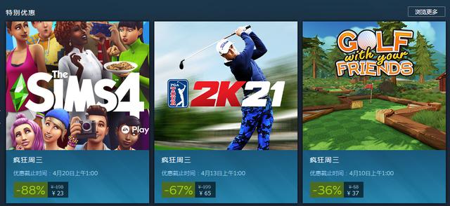 目前,新一期“Steam疯狂周三特惠”已经开启,《模拟人生4》、《和你的朋友打高尔夫》、《Spiritfarer(灵魂摆渡人)》这三款游戏均有优惠,以下为此次公开的打折优惠细节。