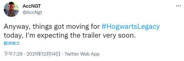 AccNGT在推文中表示:“无论如何,今天的《霍格沃兹的传承》活动开始了,我预计预告片很快就要来了。”