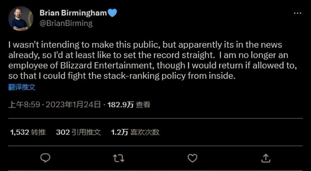 据报道,Ybarra 还淡化并坚持捍卫公司目前使用堆栈排名进行绩效评估的做法。该策略最近登上了头条,因为《魔兽世界》怀旧服的一位主要开发人员此前因为对该政策进行了抗议后被迅速解雇。暴雪目前强制要求一定比例的员工在年度绩效评估中会获得“发展中”评级,不论他们的实际表现如何,这种评级回对利润分成产生负面影响,并限制晋升机会。