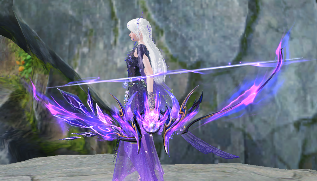 玄铁铸成的环形镶嵌在弓箭中间,周边的的流萤从环中如光芒般四散而出,灼热燃烧的黛火,沿两边而去的紫光,给整个弓身涂上了一抹别样的艺彩。少侠手执弯弓,上阵杀敌定易如反掌!