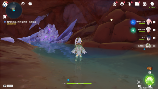 5,继续前进,击碎旁边的巨石,借助灵光消除灰结晶,进入洞窟