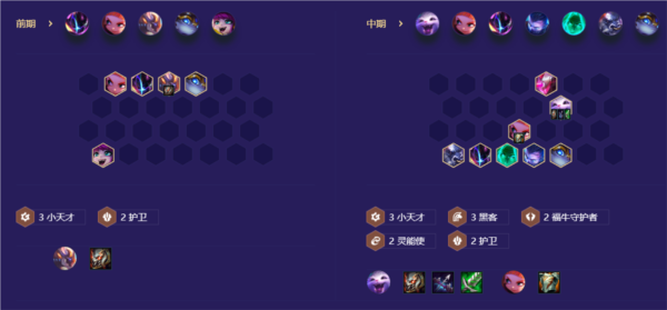 前期不拉人口,3-2升6人口,6级小搜(金币不要少于40),组【3黑客+3小天才】,主要找两星【纳尔】和两星【安妮】,【派克】、【波比】能两星最好,然后存金币,升人口,7级上【阿利斯塔】,不搜牌,升8级,上【艾克】,8级大搜一波提质量,【两星慎】、【两星乐芙兰】,然后搜三星【纳尔】。9级补【辛德拉】。有【努努和威朗普】,上【5小天才】,有【小天才纹章】,留【阿利斯塔】不要【璐璐】。 6级3费卡的概率和7级只差5%,6级阵容小成之后,能打大部分未成型的阵容,打一个强度差,可以保血量上人口。