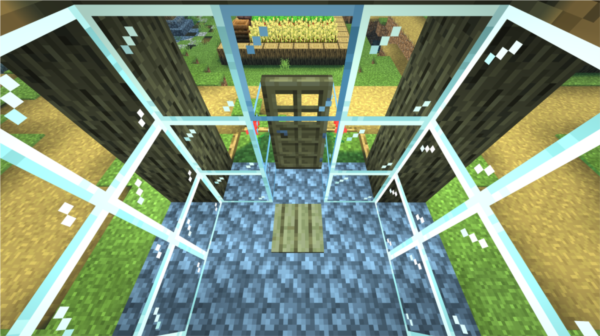 最后修补好地面,中间放一块压力板,并给房子配上全景玻璃窗,时间加速小屋大功告成。