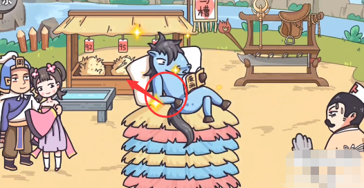 5、小乔会头后会有红色的发簪,把发簪拖动到马的身上。