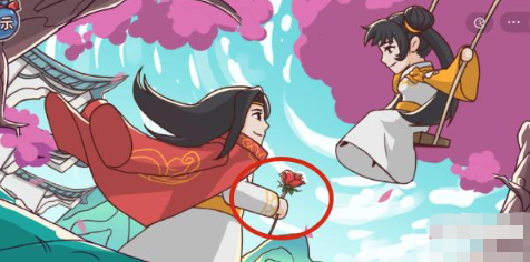 1、点击周瑜手三下,出现一朵枯萎的玫瑰花,再点击三下,玫瑰花焕发生机。