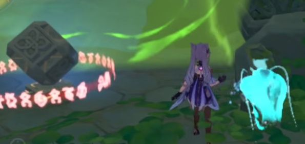 3、我们到达该平台以后,触碰仙灵它会移动激活左侧的柱子。