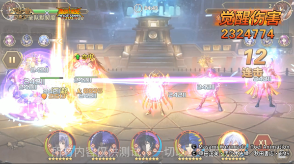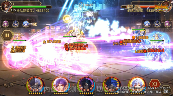 对方阵容:神圣金牛座·阿鲁迪巴、神圣双子座·撒加、神圣处女座·沙加、神圣水瓶座·卡妙、冥衣·撒加