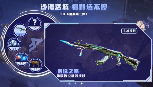 8月6号,也就是火线盛典当天,“沙海活城 福利送不停”系列活动将迎来第二阶段,除了华夏传说皮肤“AK47-华夏传说·起源”、“M4A1-猛虎”,以及保底666钻石等奖励外,还会有更多的神秘物品和奖励,请 CFer们拭目以待!
