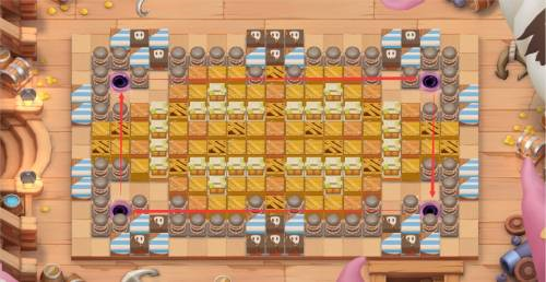 《全民泡泡超人》迷宫地图妙趣横生,层层叠叠的箱子解锁的每一条路线都带来不一样的惊喜,这张地图讲究使用道具的时机,和对节奏的把控,是进阶高端选手的热门地图。