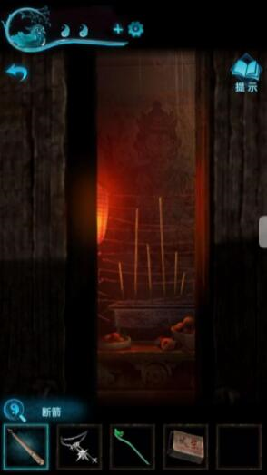 8、我们到车的位置,按照顺序来点香,点完即可获得字迹,然后我们可以解开山洞前石狮子下的机关,即可获得一把钥匙。