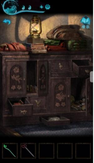9、我们打开山洞中刚才的房间,进去先翻柜子,即可得到一个珍珠耳环,再用手链将胶带扯开,即可得到神像以及蜡烛。