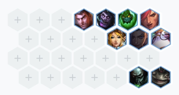 前排肉盾,后排角落放英雄给C位防钩,注意一下名流格,进行吹风法衣针对。