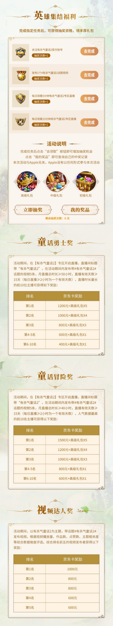 冬日将至,小红帽带你共闯童话梦境。冒险者们在活动期间内前往快手平台开启直播,分享自己在童话世界的探险时刻,有机会赢取千元京东卡与游戏礼包等众多惊喜奖励!