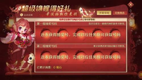 在活动期间,每位玩家每天可以通过“首次完成任一难度的神阶副本”及“累计消费达到188点魔石”两种方式,分别获得1组“福鲤数”。