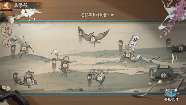 每当获得「绘画素材」时,该类素材对应的熟练度将会增加。阴阳师们可前往画修行查看素材熟练度。