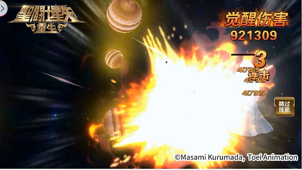 战斗后期,神圣双子座·撒加第四次触发怜悯之心,随后施放觉醒技命中了白羊座·贵鬼,打出了223W伤害。