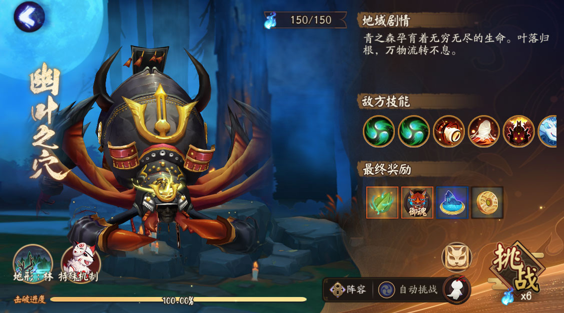 「幽叶之穴」为无限节点,敌人被击败后会重新刷新。阴阳师们每次击败敌人同样能获得对应的寮积分奖励。