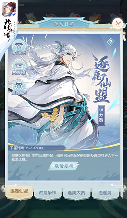 为了考验各位上仙的实力,仙尊下旨举办的仙盟比武大会“逐鹿仙盟”今天正式开赛。各位可在主页——洞府——活动日程中点击报名,跨服仙盟战中,上仙将和其他服务器的仙友互相切磋挑战,展开激烈竞争,为自己所在的仙盟进阶淘汰赛作出贡献。逐鹿仙盟会将多个服务器划分为一个战区,上仙可在活动界面中查看。最终16强仙盟将展开激烈的淘汰赛,经过多轮比拼决出最终赢家。个人积分和仙盟名次都可以兑换成混沌青莲、宝石材料、代币等奖励,使用代币,还可在逐鹿商店中兑换仙器与装备。
