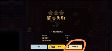 2、随意选择一个60级副本,打不过失败,到结算界面,选择增强能力选项,如下图