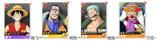 艾斯→导航员·奈美→巴奇→薇薇→山智→克洛→Mr.2→甘·福尔→可比→小八(伙伴效果:获得20%同类型伙伴的属性增益)