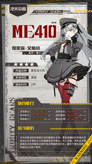 近期,《湮灭效应》也正式公布了两位空军新角色——行动代号“ME410”和“雷电”。代号“ME410”的霍妮森·艾梅尔来自莱茵地区,性格活泼,外形出众,一头银灰色头发搭配改良版制服,娇俏又不失冷艳高贵的气质。从属于重型战斗机兵种的霍妮森,擅长利用强大的机动以及丰富的活力拦截重型空中单位,不愧为莱茵日间拦截部队的王牌。