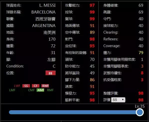纸面简析:伊涅斯塔没有数据图,因为数据库中无法查找只有手游端才有的J联赛精选球员。但精选小白绝对是极品球员,这是唯一一个可以盘控99情况下兼具99地面传球的终极输出点,但其速度和体能应该还是无法达到80以上,我觉得有金币的话可以考虑撸一个,奇货可居。