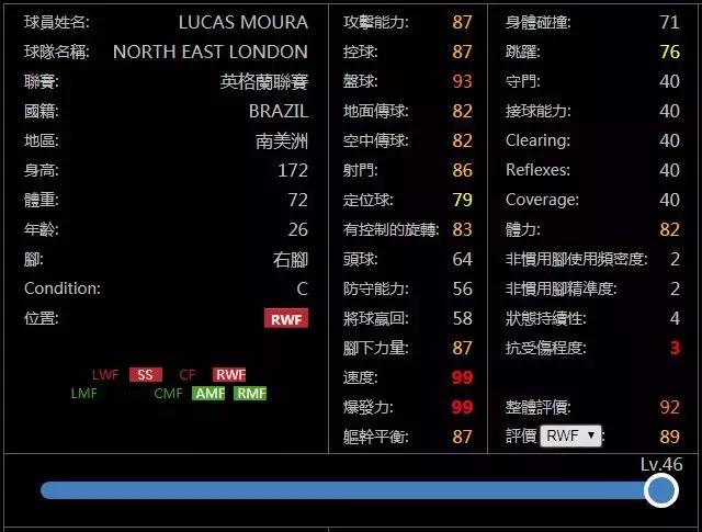 纸面简析:双速99射门超过85自带精确传中技能,应该是除了萨拉赫和姆巴佩之外最好的右边锋之一。