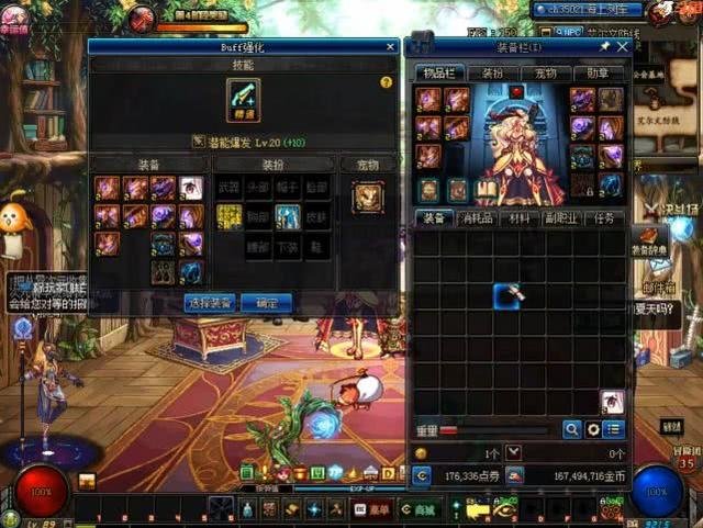 不过大家都知道,新角色想要好装备buff强化是很难搞的一关,因为这东西只能刷,商城可是买不到的,一般情况下单刷是要花上至少两三个月的,不过好在旭旭宝宝号多,直接从其他号上找到了多余的材料,挨个换上女大枪的buff换装之后再跨界过去,一套完美装备的女大枪就出炉了。